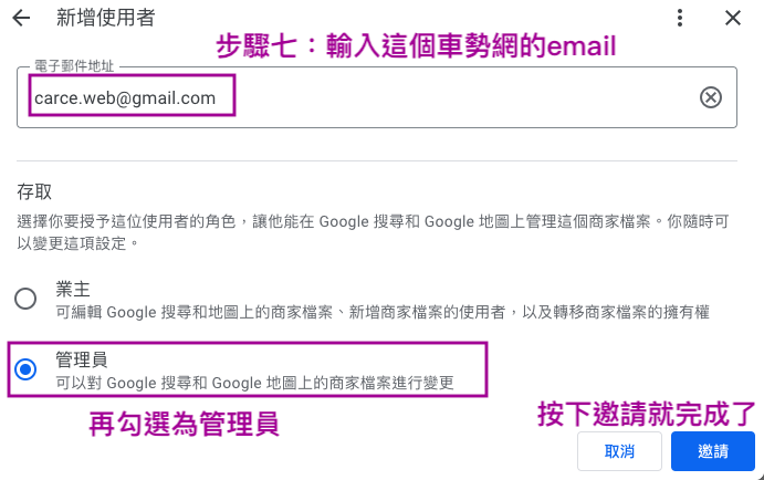 以下教學如何分享Google Map權限給第三方,讓別人一起幫您經營管理Google Map。