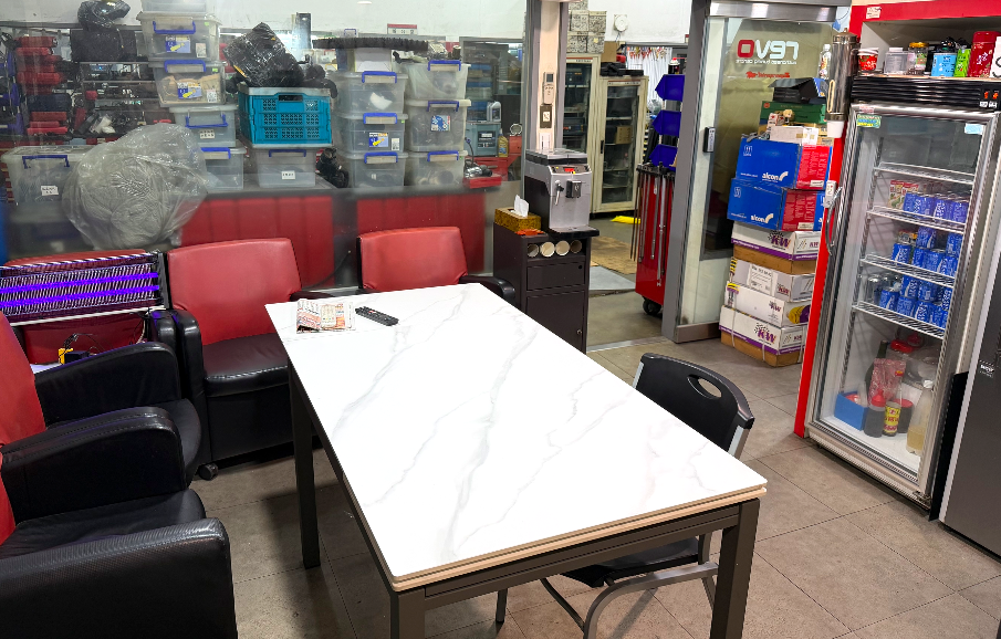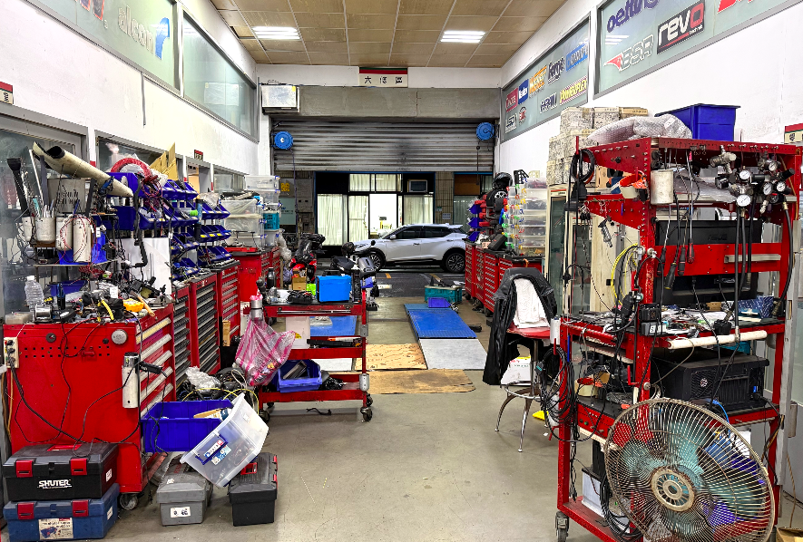 - 全廠共82坪,5架工台,廠內最多可容納8台車。